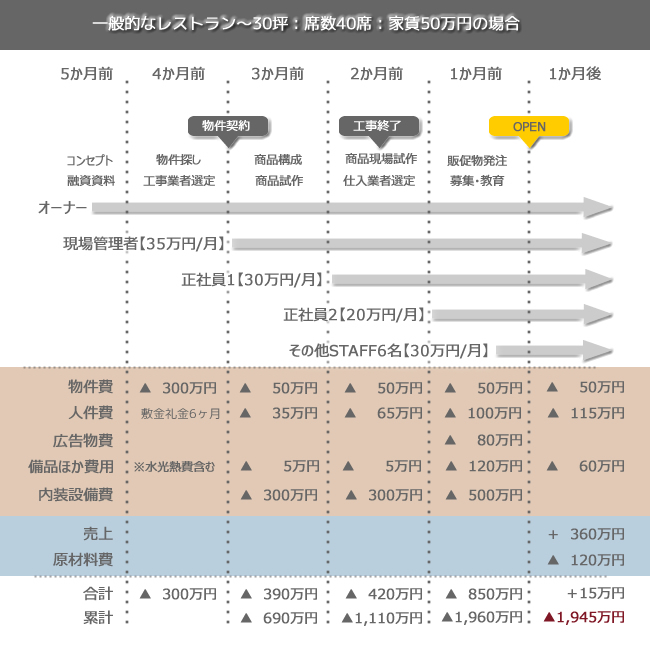 - 何度もの打ち合わせでOPENは予定より遅れ、正社員給与・賃借料・あるべき売上を失います。